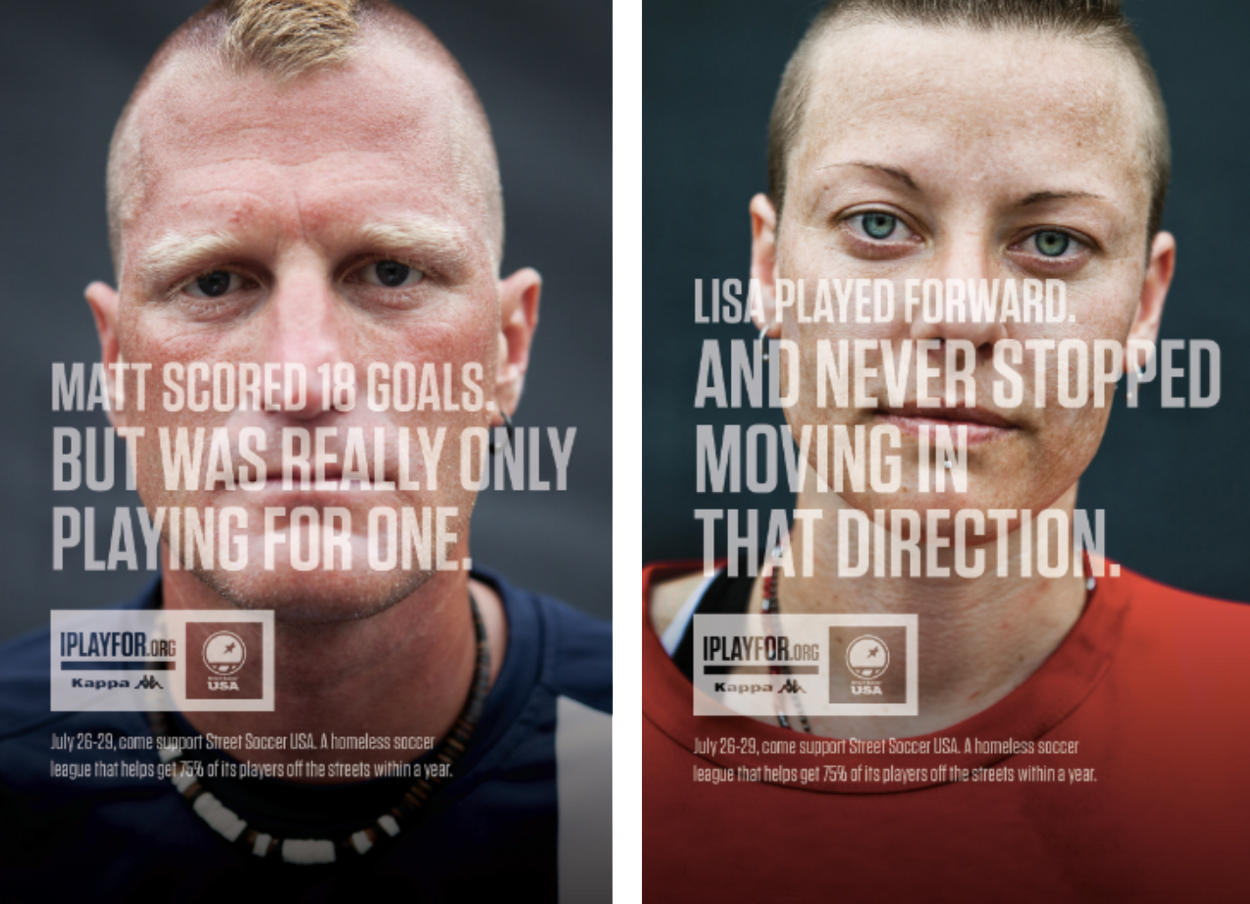 Street Soccer is national soccer league that works with homeless players to give them the support, confidence and skills they need to get back on their feet. Our campaign helped raise awareness for them and their mission.